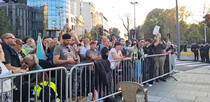 Полициска бригада, во целосна опрема за разбивање на демонстрациите, ги оттурна претходно граѓаните кон булеварот Кнез Милош, додека луѓе од таканаречениот Ќациланд (спроти Собранието во шатори) се собираат во голем број во оградениот простор околу Собранието.